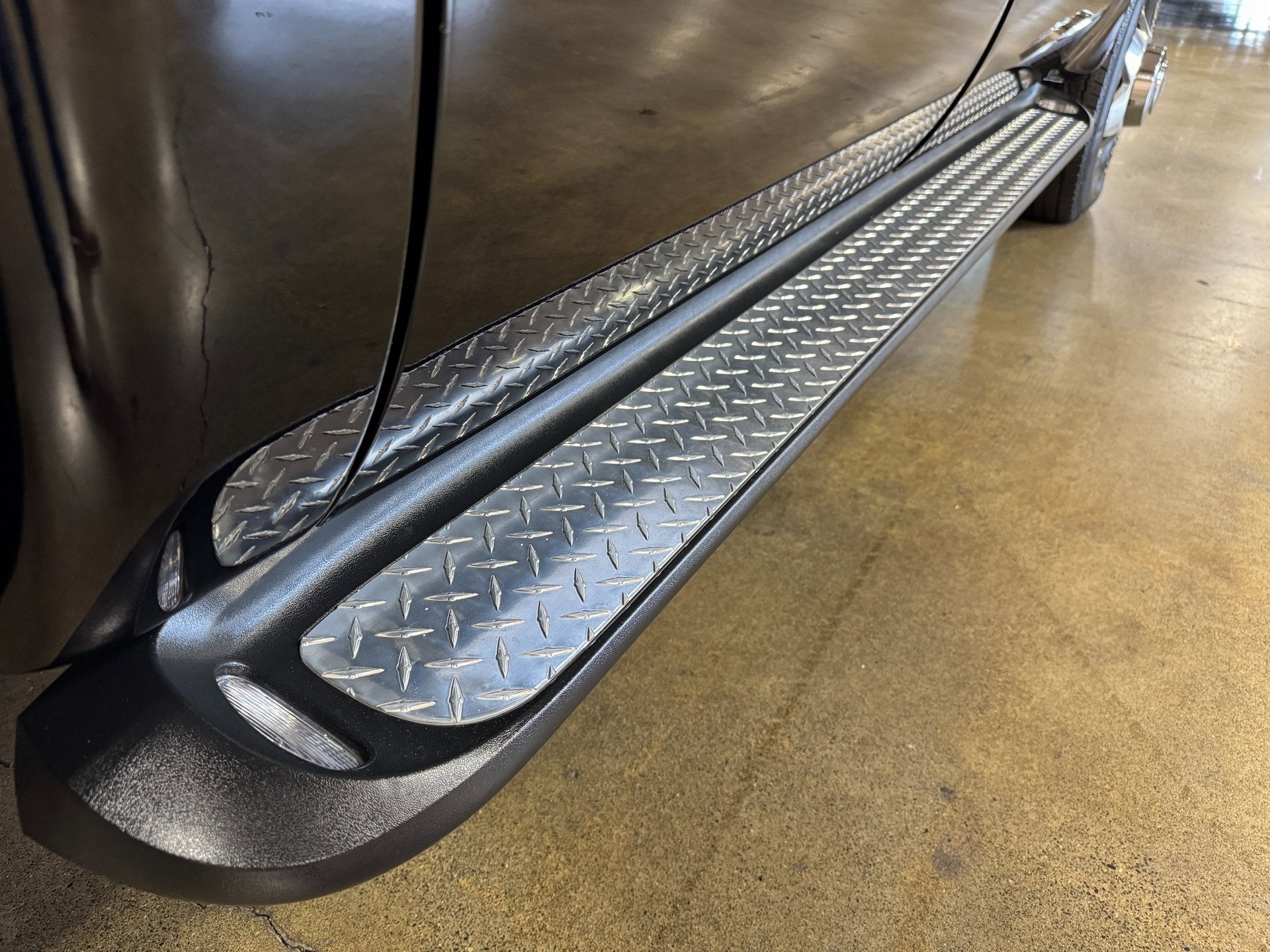 - Molded black cab steps
