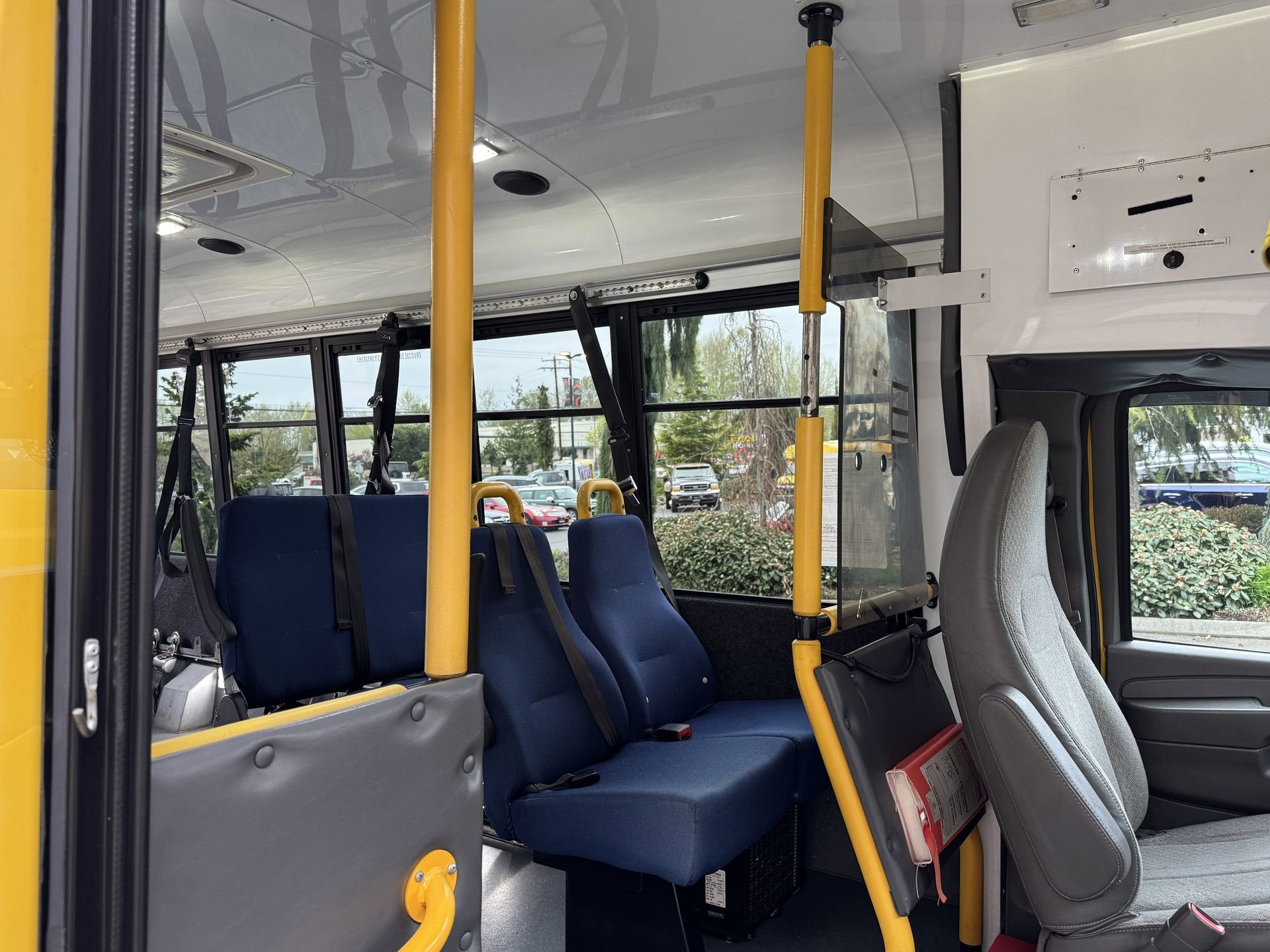 - Seating arrangement, driver and front passenger highback bucket includes head restraints and vinyl or cloth trim
